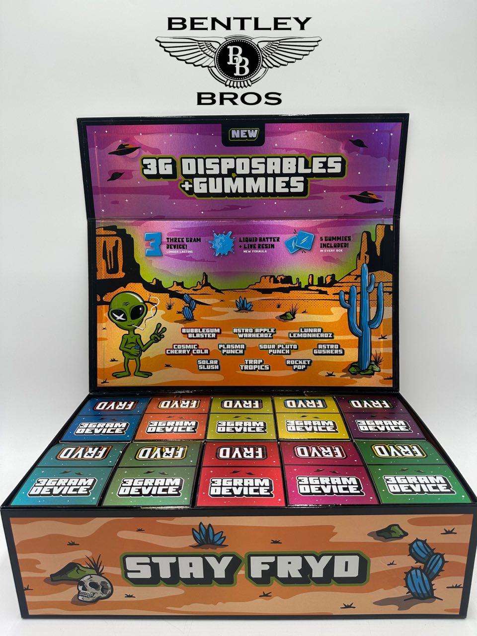 - Like many disposable vapes, the 3G FRYD WITH GUMMIES is compact and lightweight, making it easy to carry for on-the-go vaping.
