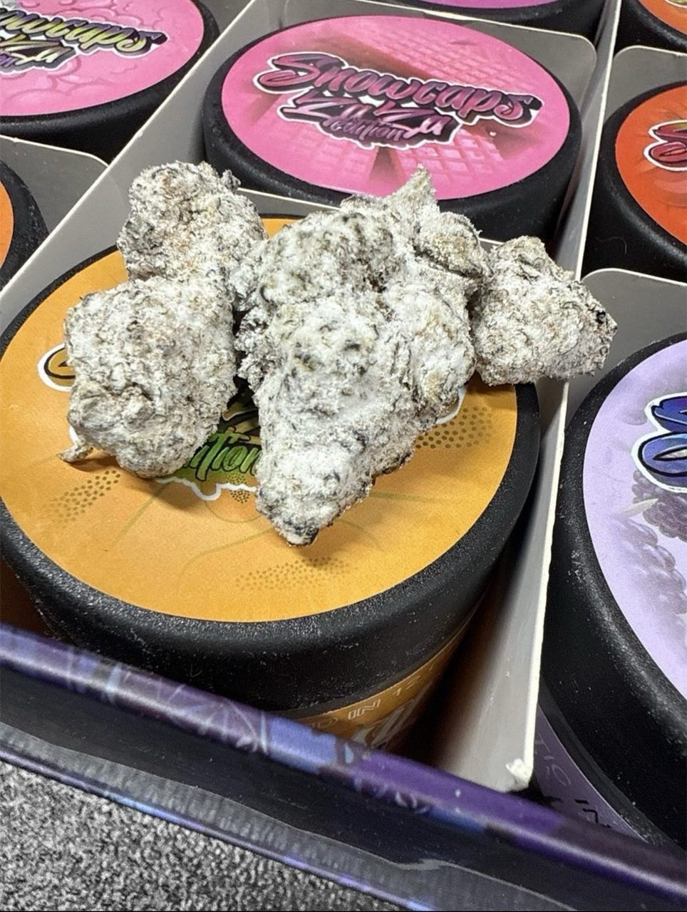✔ Snowcap Trichome Frost – Glittering, resinous texture with a smooth, flavorful pull.