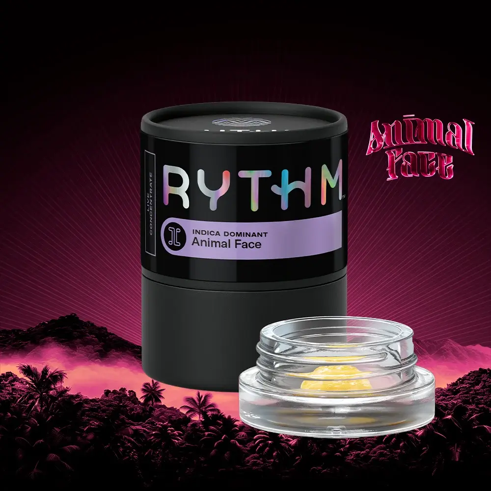 Q: Where can I find rythm animal face near me? Rythm animal face near me search ends at Sunnyside — the Animal Face Live Resin Indica Concentrate available now at $19.00 delivering premium RYTHM Icon Strain quality at an exceptional everyday price.